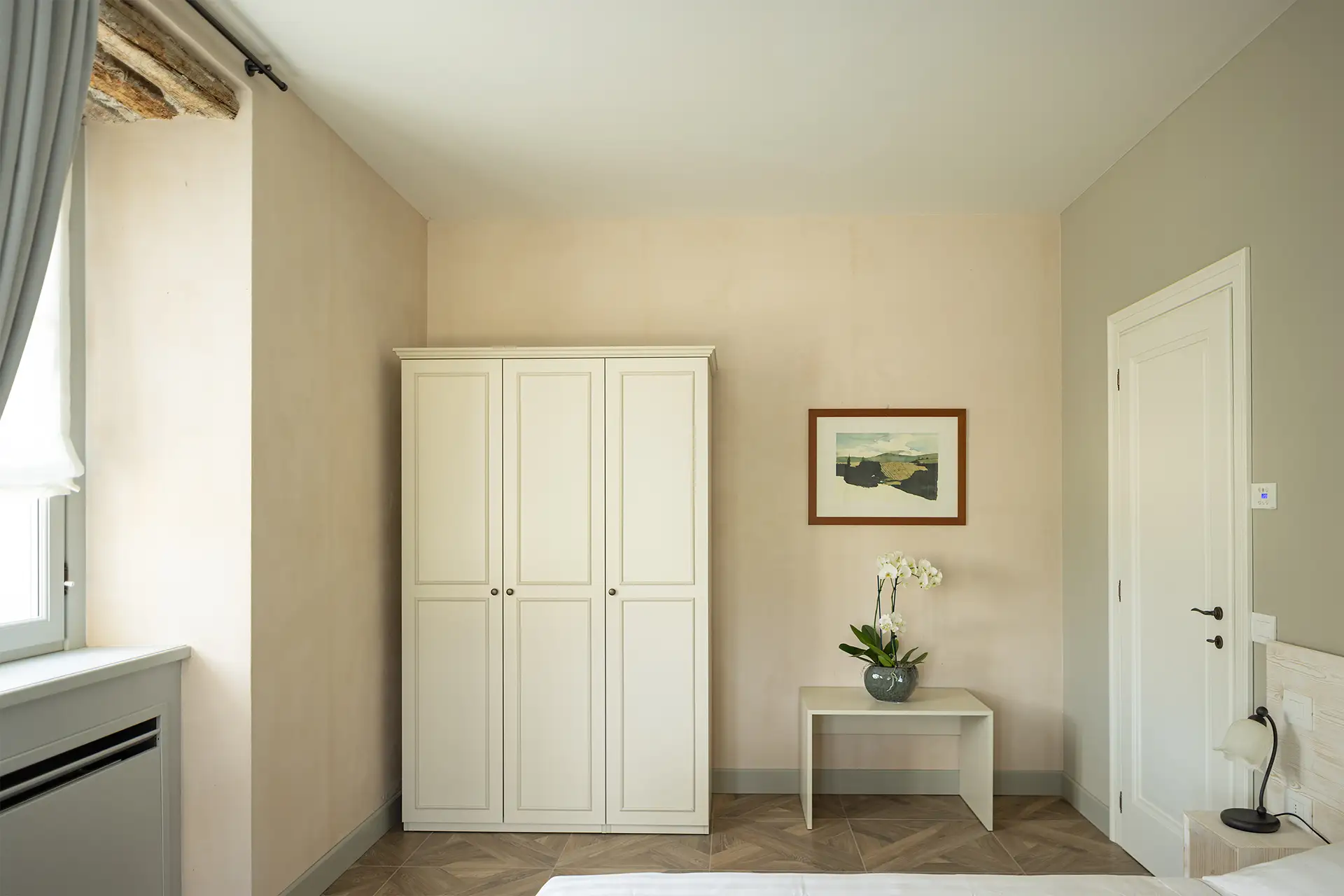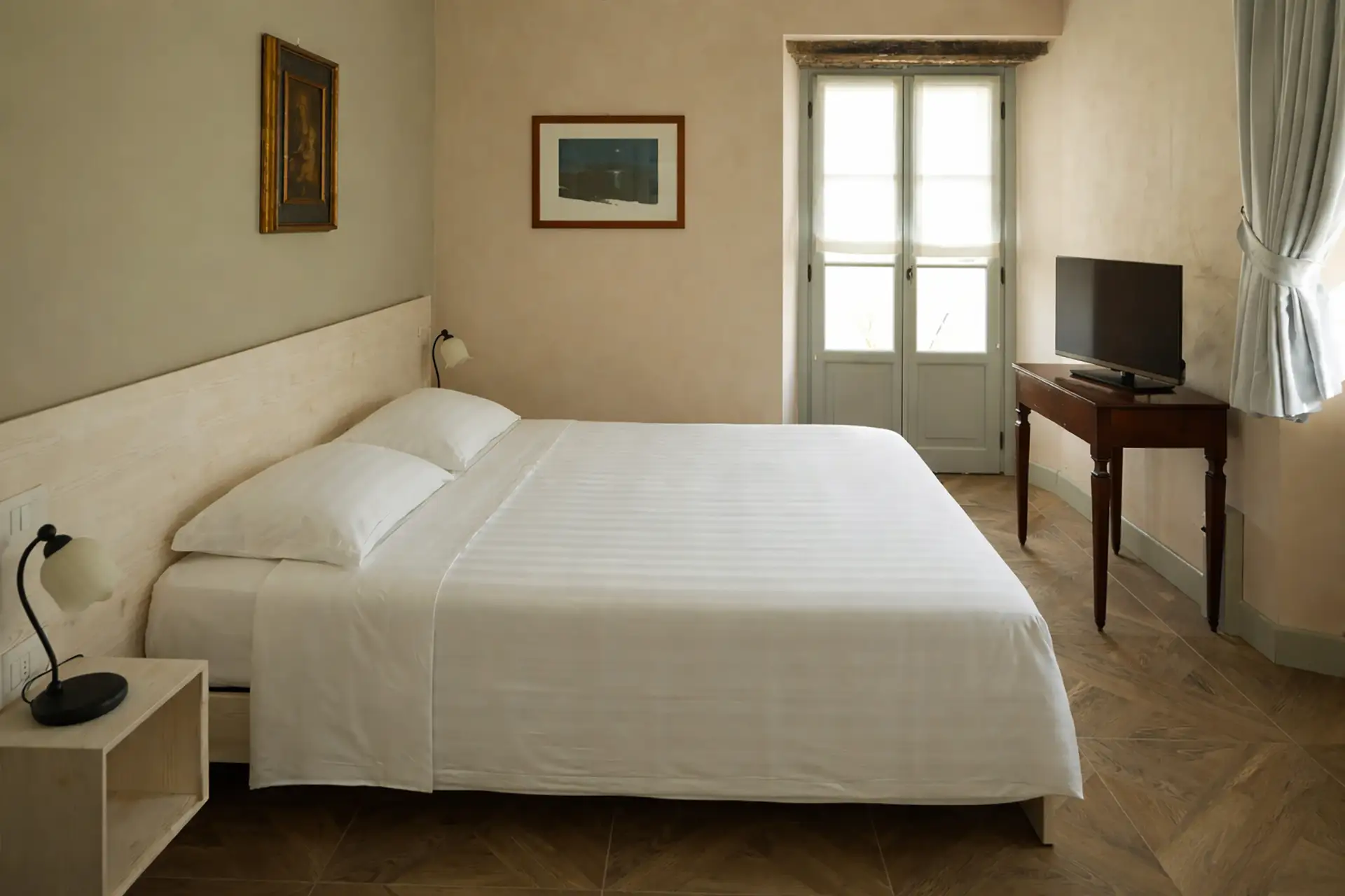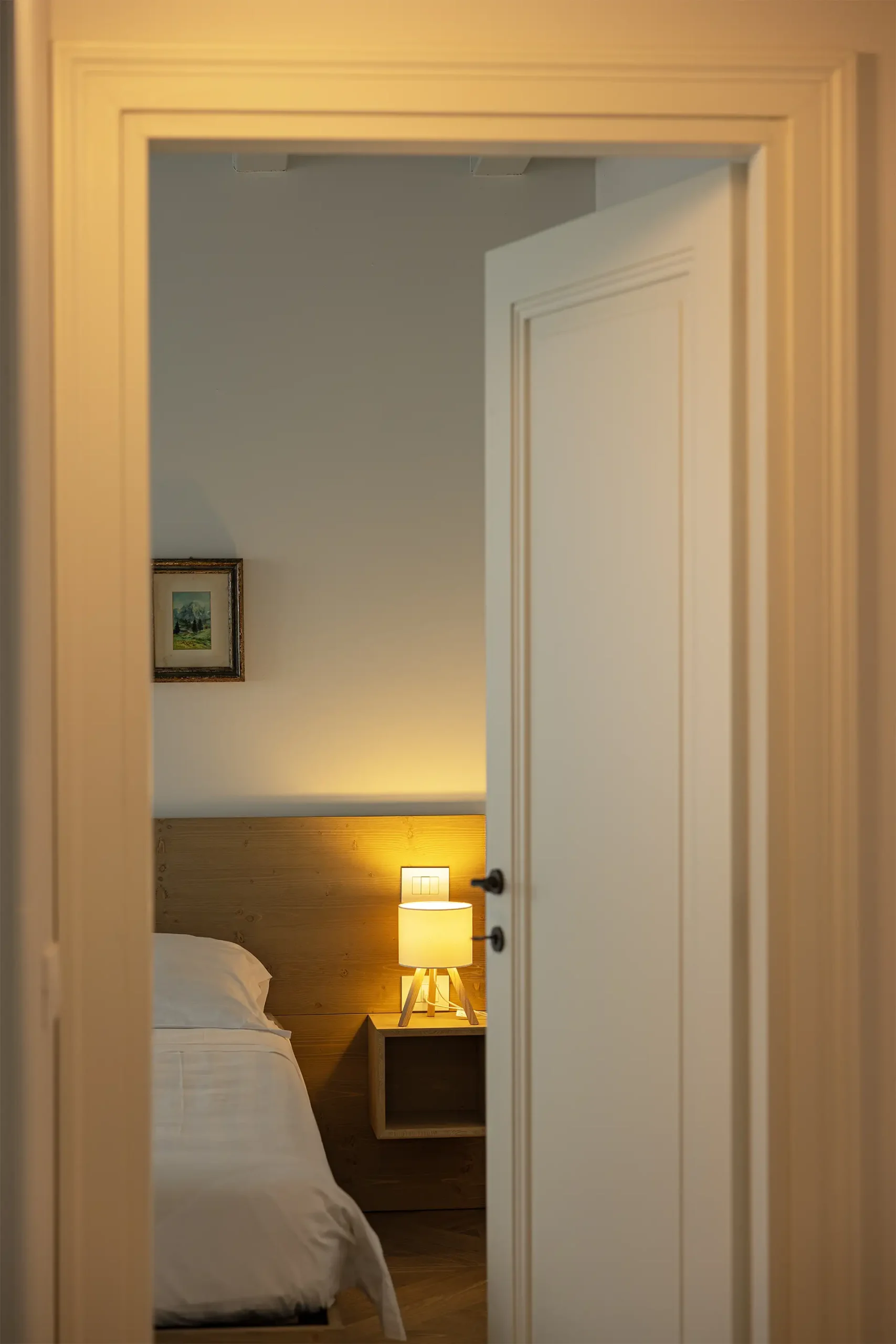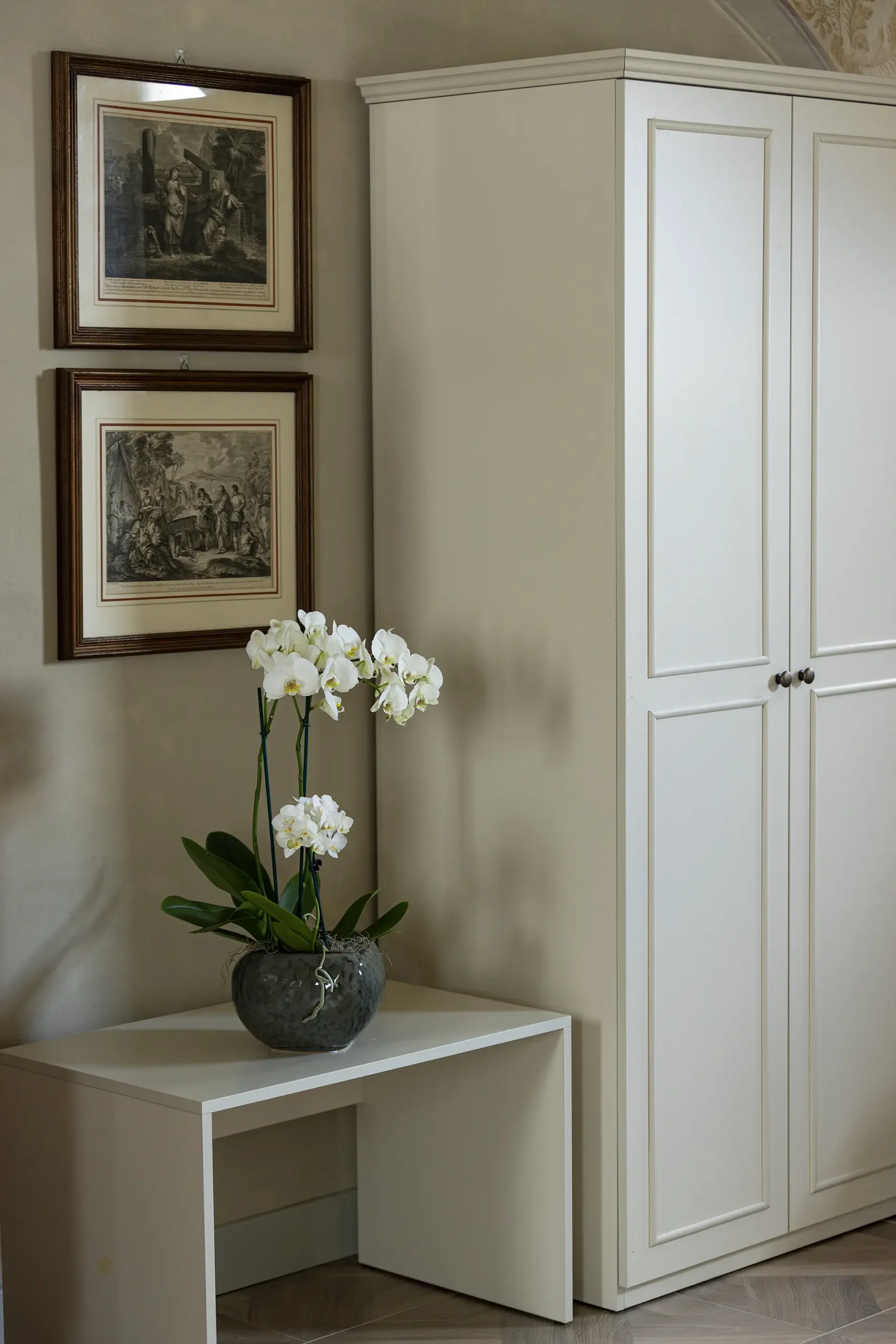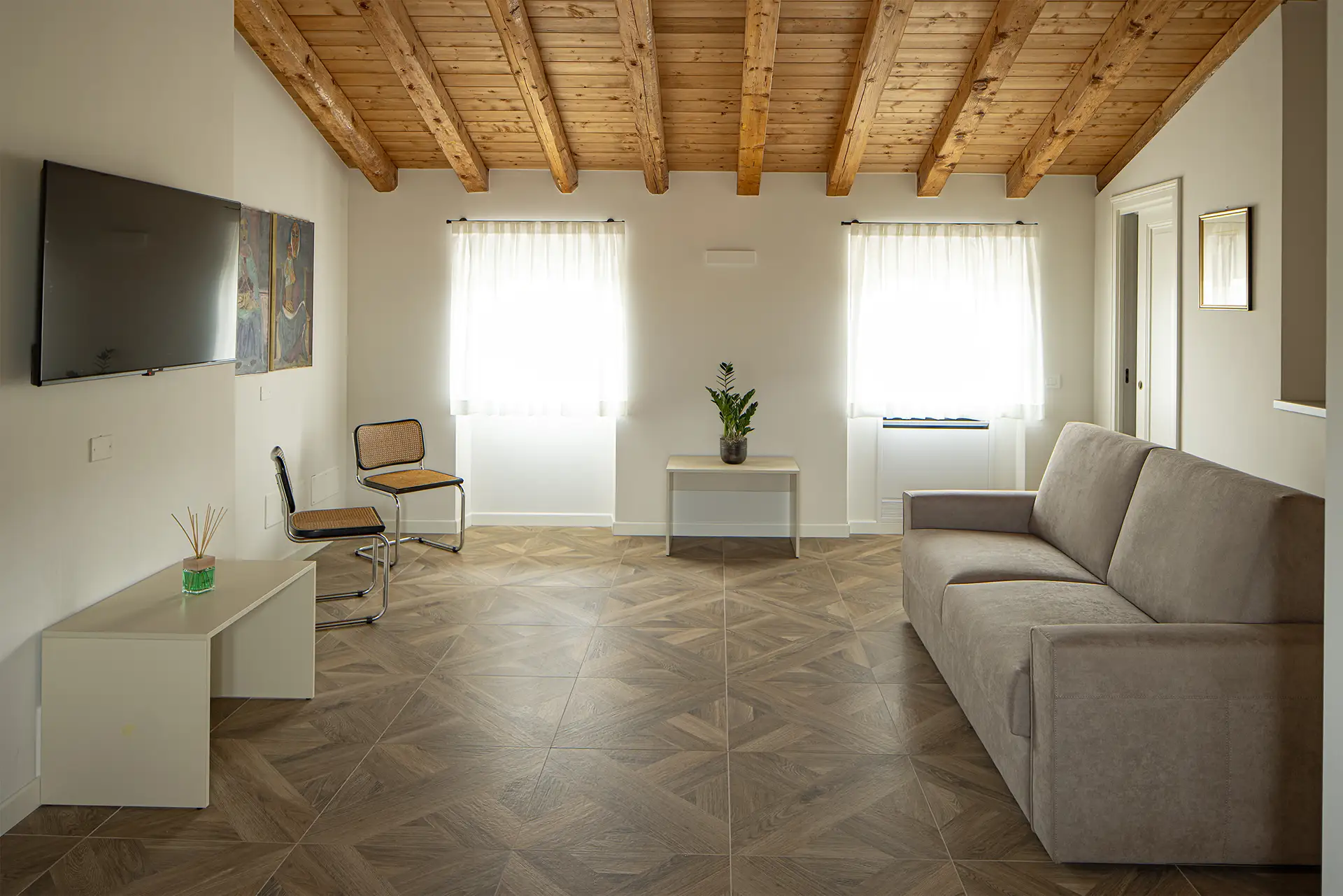 All’interno, alcune sale conservano tracce decorative ottocentesche, con motivi floreali e paesaggi, che restituiscono il sapore di una dimora vissuta e stratificata nel tempo. Un’ospitalità che unisce il fascino dell’architettura storica al comfort di appartamenti raffinati.