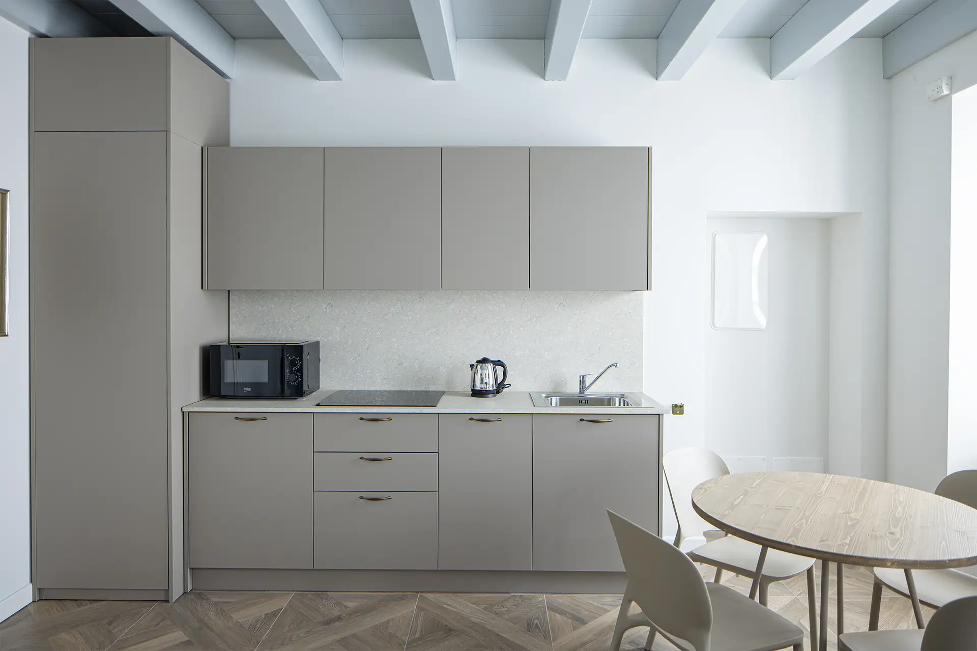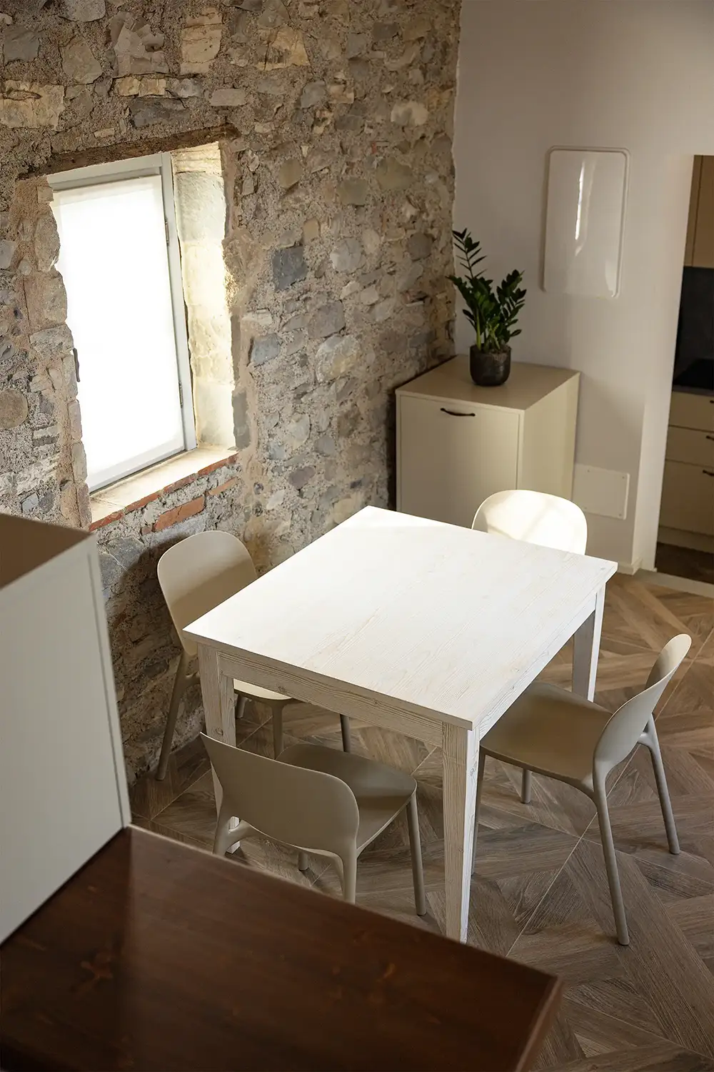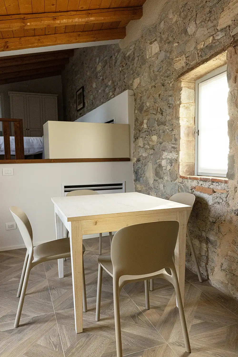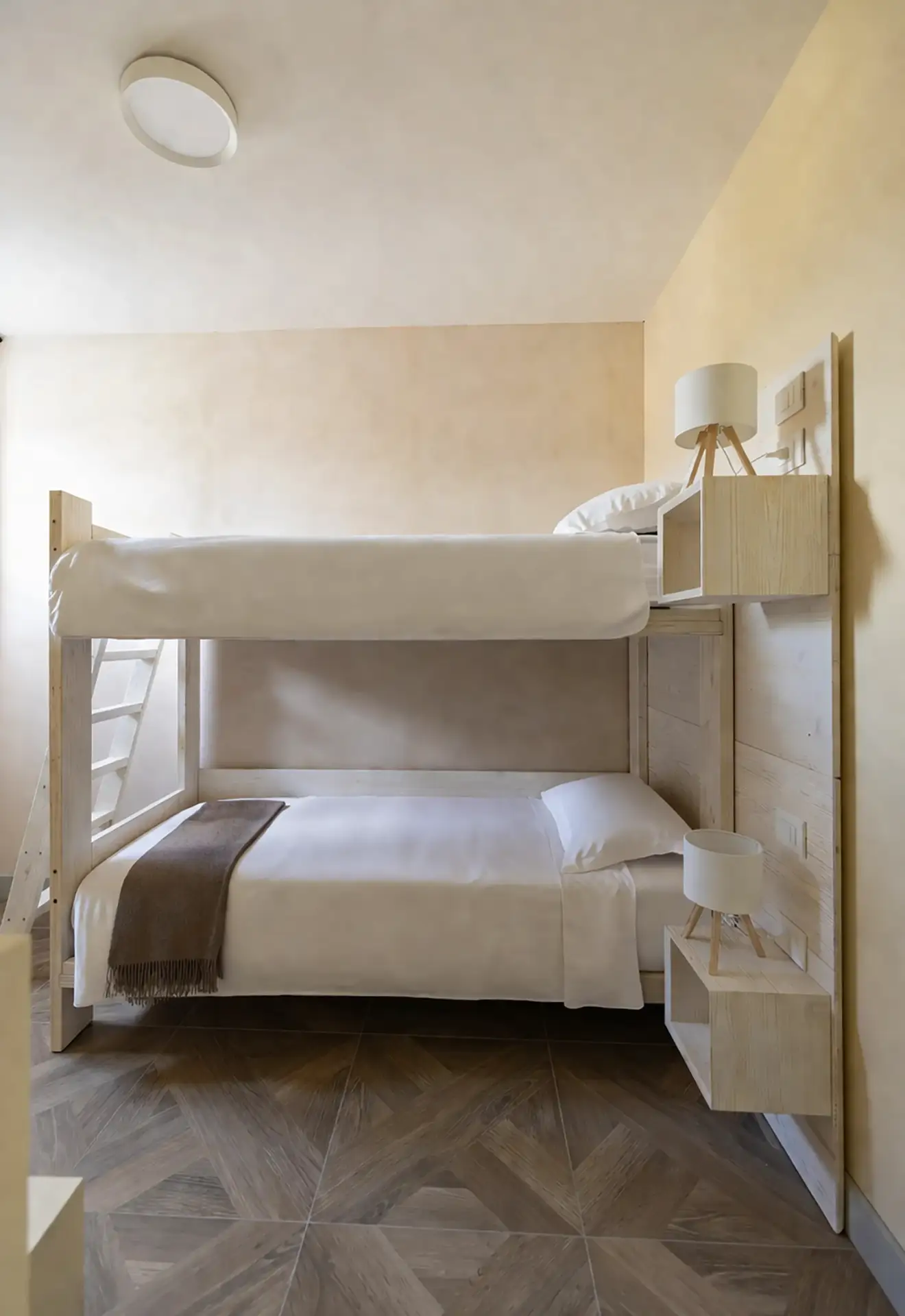 All’interno, alcune sale conservano tracce decorative ottocentesche, con motivi floreali e paesaggi, che restituiscono il sapore di una dimora vissuta e stratificata nel tempo. Un’ospitalità che unisce il fascino dell’architettura storica al comfort di appartamenti raffinati.