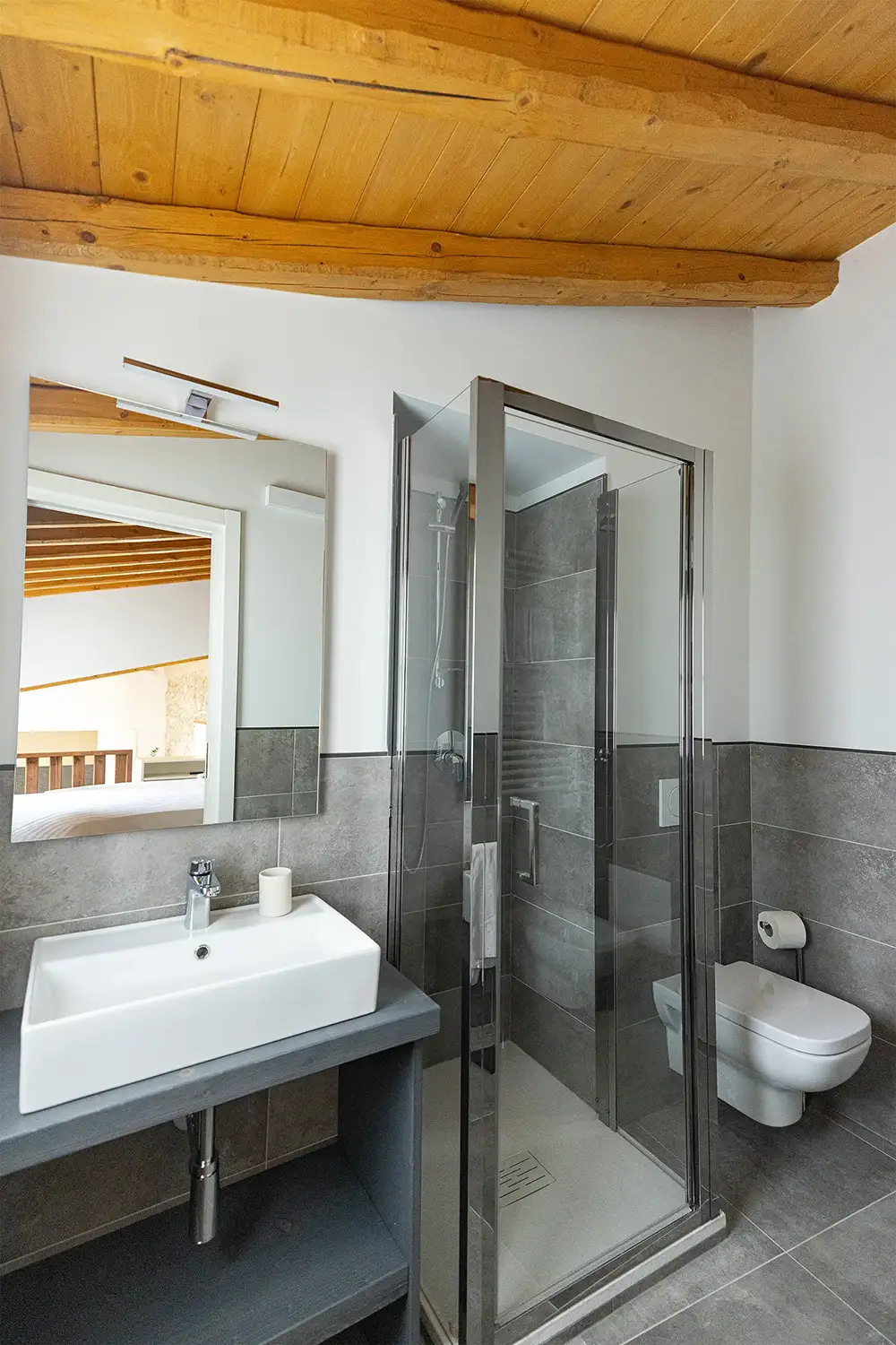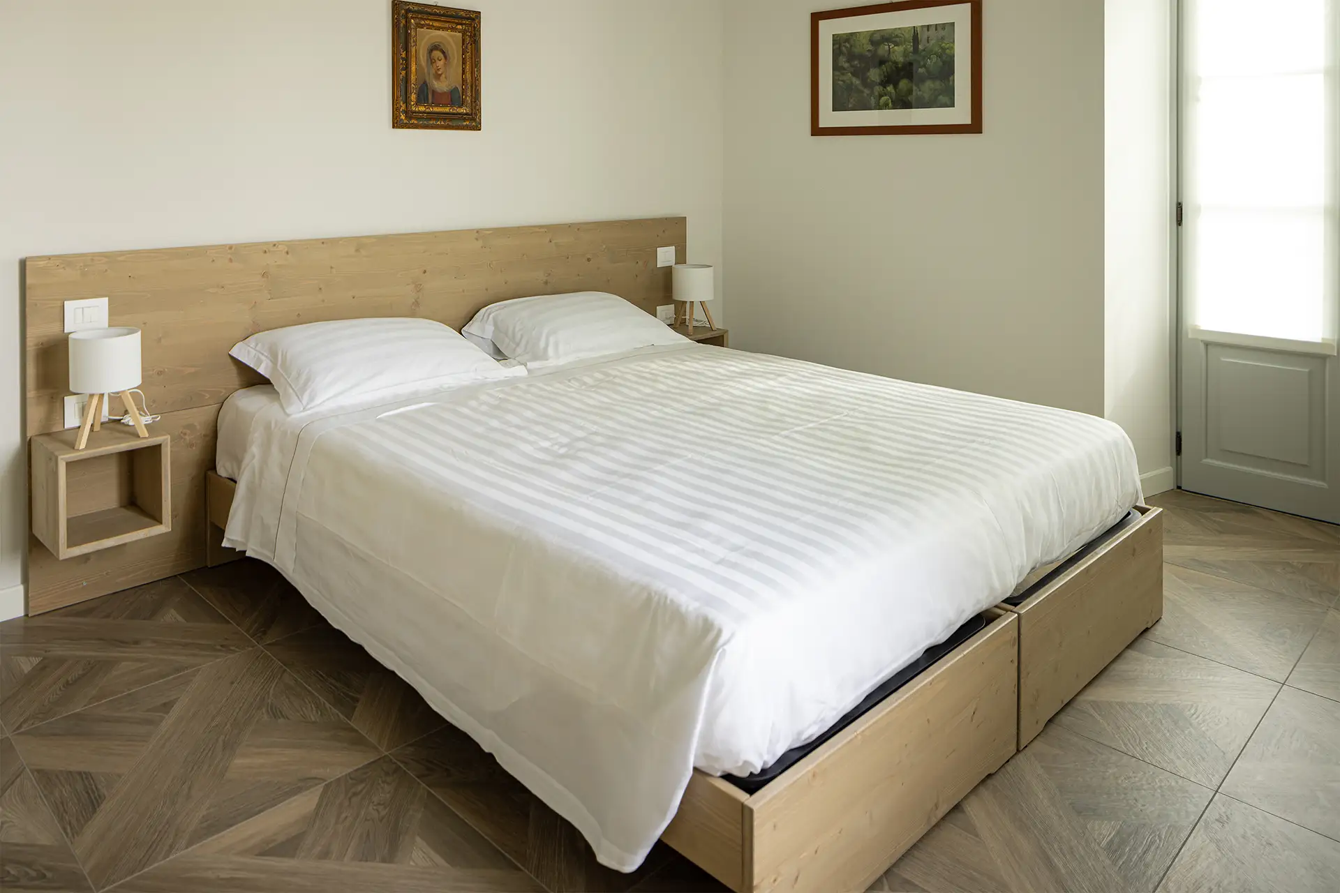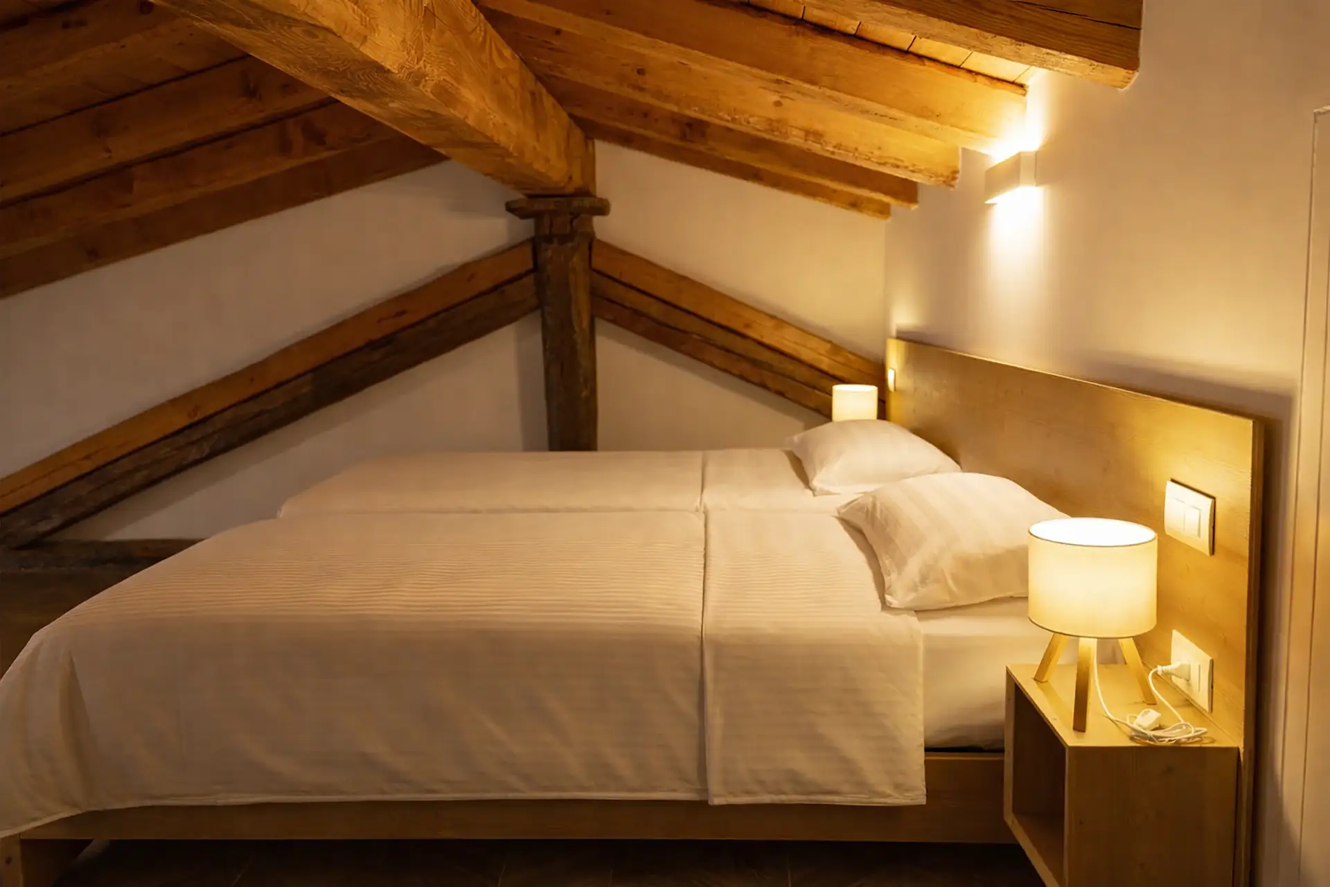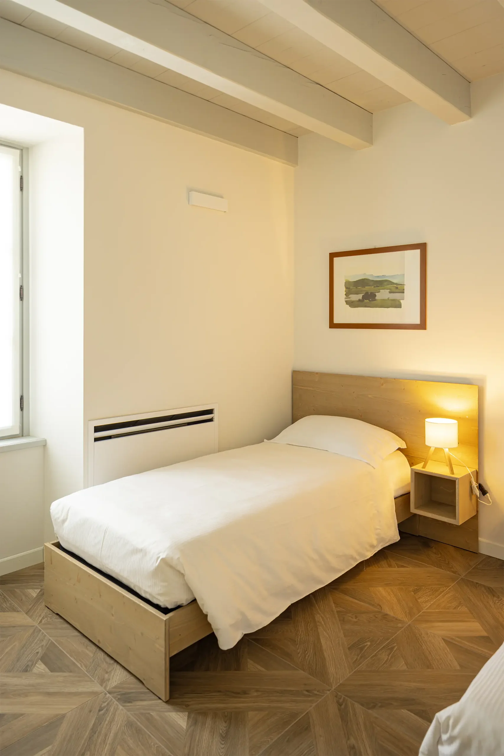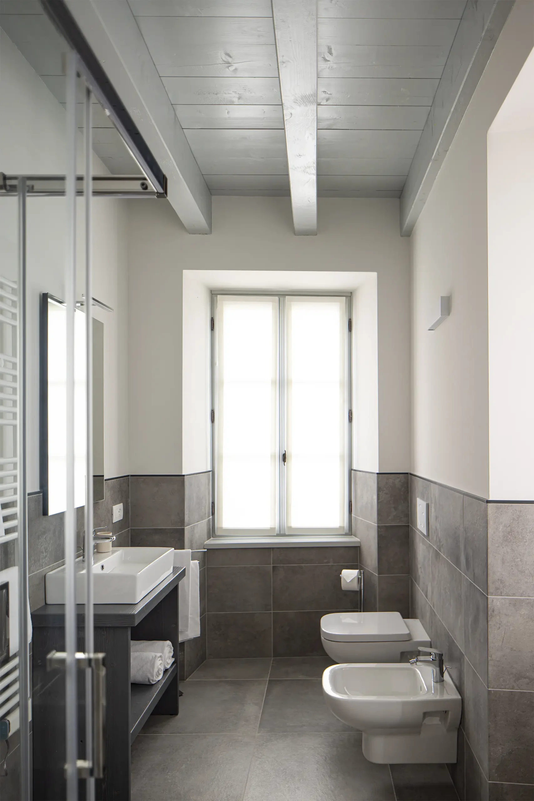 All’interno, alcune sale conservano tracce decorative ottocentesche, con motivi floreali e paesaggi, che restituiscono il sapore di una dimora vissuta e stratificata nel tempo. Un’ospitalità che unisce il fascino dell’architettura storica al comfort di appartamenti raffinati.